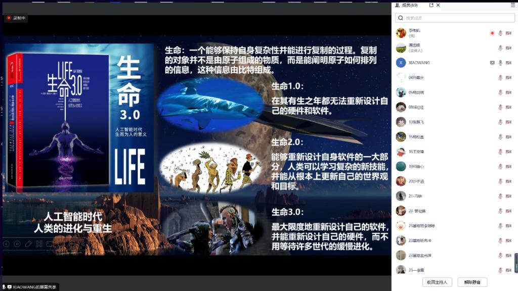 在报告中,王教授首先以古今中外神话传说的人物为例,启发大家思考“人类的生存和发展是为了什么”,并带大家回顾了从生命1.0到生命3.0的概念。在此基础上,王教授聚焦于人工智能和人的未来的关系,从AI的起源到发展,详细讲解AI 3.0,启发同学们对人与机器的互动方式,以及可能出现的各种结局更全面、更深刻的认知。“AI 3.0不仅代表了技术的进步,更体现了我们对于生命的理解、对于未来的设想。”王晓教授认为,只有当我们理解和尊重生命,才能更好地理解和应用人工智能技术。我们不应被现有的科技所局限,而应积极探索和创造新的可能性,并鼓励同学们通过不断的创新和学习来适应这个快速变化的时代。