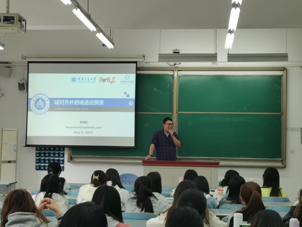 5月9日上午,公司2023年“双福·行远”系列讲座第二场在科学城校区A01207教室成功举办。本次讲座以“域对齐外的域适应探索”为主题,由李伟凯博士主讲,2020级应用统计学系全体同学及感兴趣的高年级研究生参加了讲座。董志清副教授主持。