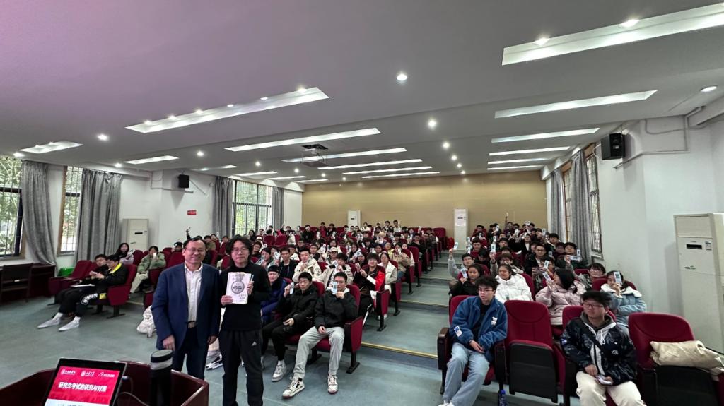 在交流互动环节,同学们积极提问,与张教授进行了热烈的讨论。张教授不仅耐心解答了同学们的问题,鼓励同学们积极参加数学竞赛,挑战自我,实现个人价值。张教授还给参与互动的同学赠送了图书,图书不仅是一种实物激励,更是对同学们积极参与交流的肯定和鼓励。