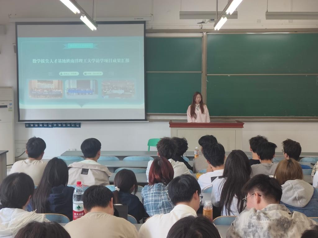 听取汇报后,副经理谭远顺教授为学子们的成长倍感欣喜:“你们带回来的不仅是知识,更是国际顶尖学府的创新基因。”他提出基地班发展“三箭齐发”战略:深化国际化科研交流与合作,建立“学术导师+企业导师”双轨制;以“数学文化节”“国际学术沙龙”等活动激发创新活力;推行“学霸帮扶计划”,让基地班成为全院学风建设的标杆。“希望你们保持‘探界者’的姿态,把世界当作课堂!”谭远顺的寄语引发全场热烈掌声。