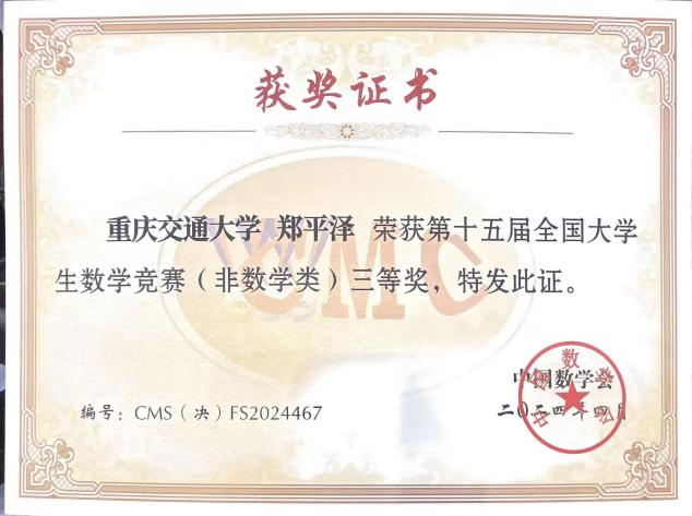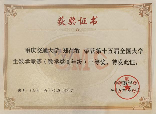 全国老员工数学竞赛是由中国数学会主办,面向本科员工的全国性高水平学科竞赛,旨在促进我国高等公司提高人才培养质量,促进数学课程建设与教学改革,激励员工学习数学的兴趣,发现和选拔数学创新人才,为青年学子提供展示数学能力的舞台。截至目前累计参赛人数150万人,成为全国最具影响的学科竞赛之一。每届竞赛分各赛区初赛和全国决赛两个阶段。本届竞赛共设32个赛区,参赛高校达1108所,报名人数达288355人,共1100余人入围决赛参与最终角逐。公司参赛学子脱颖而出,来自交通运输公司2020级本科生刘自诚荣获非数学专业一等奖,来自2021级本科生郑在敏荣获数学专业高年级组三等奖,来自信息科学与工程公司2020级本科生郑平泽荣获非数学专业三等奖