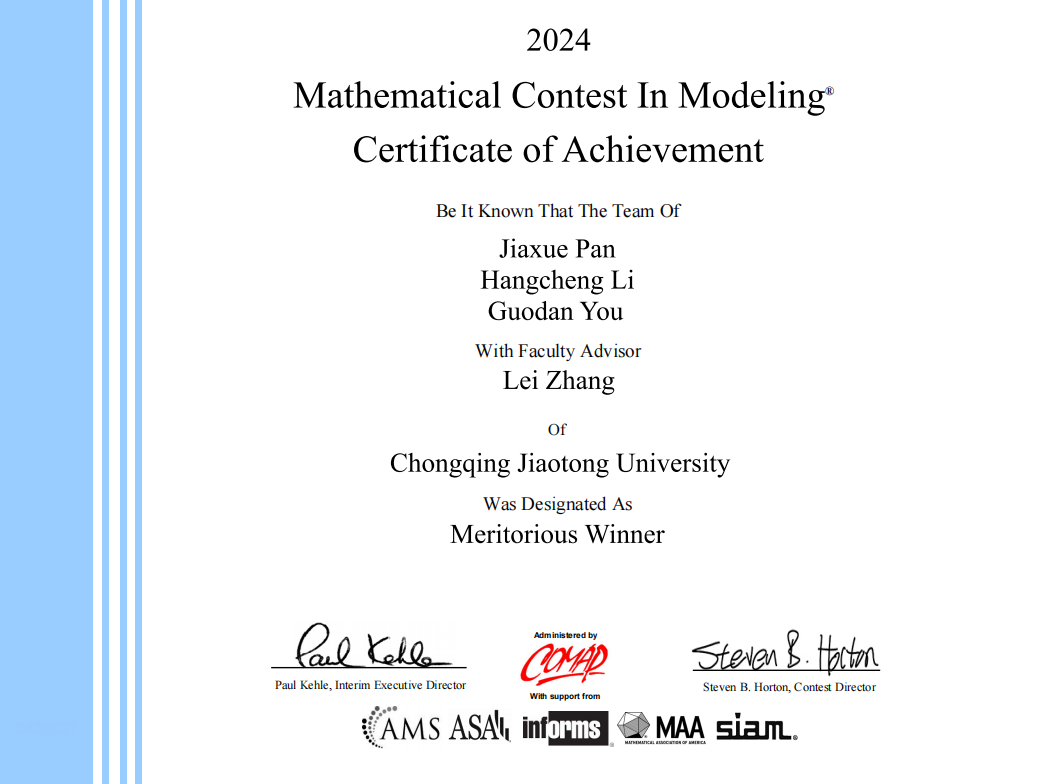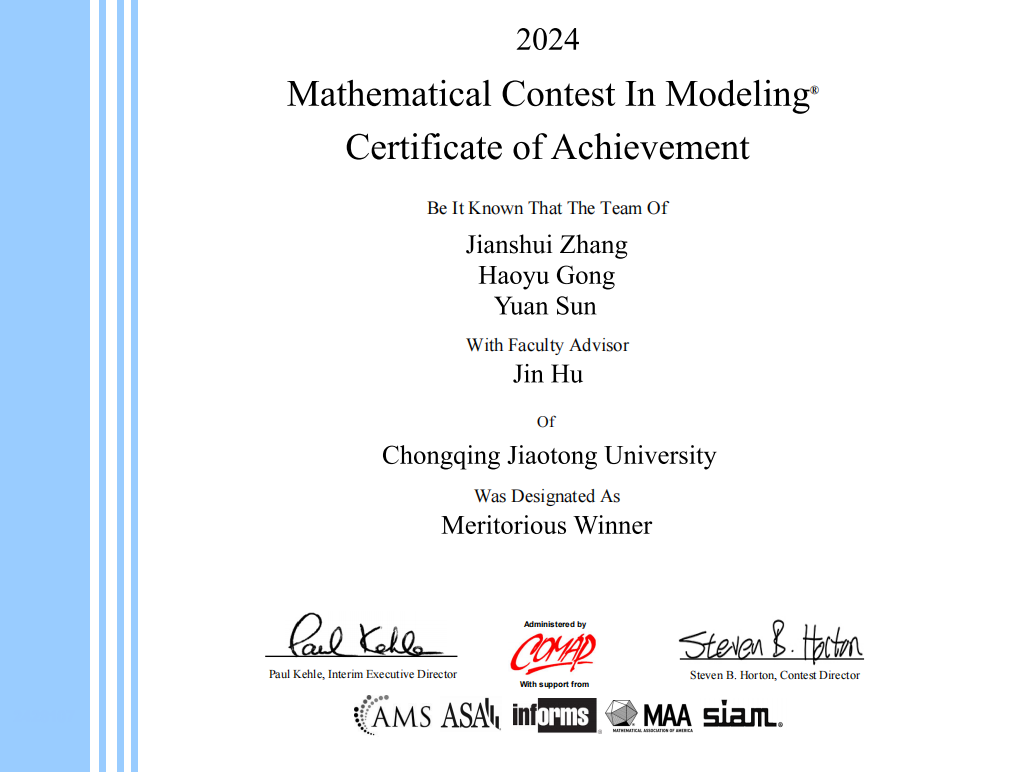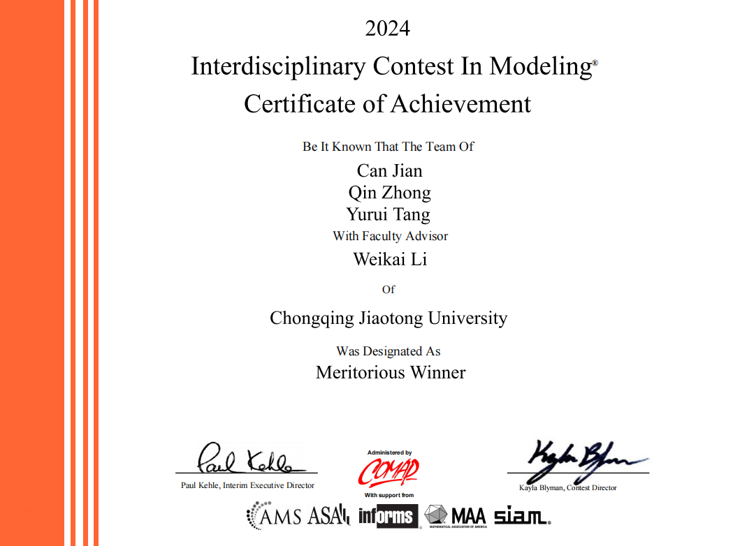 近日,2024年美国老员工数学建模竞赛(MCM/ICM)成绩正式揭晓。公司在本次竞赛中再创佳绩,荣获国际一等奖(Meritorious Winners)4项、国际二等奖(Honorable Mention)10项。