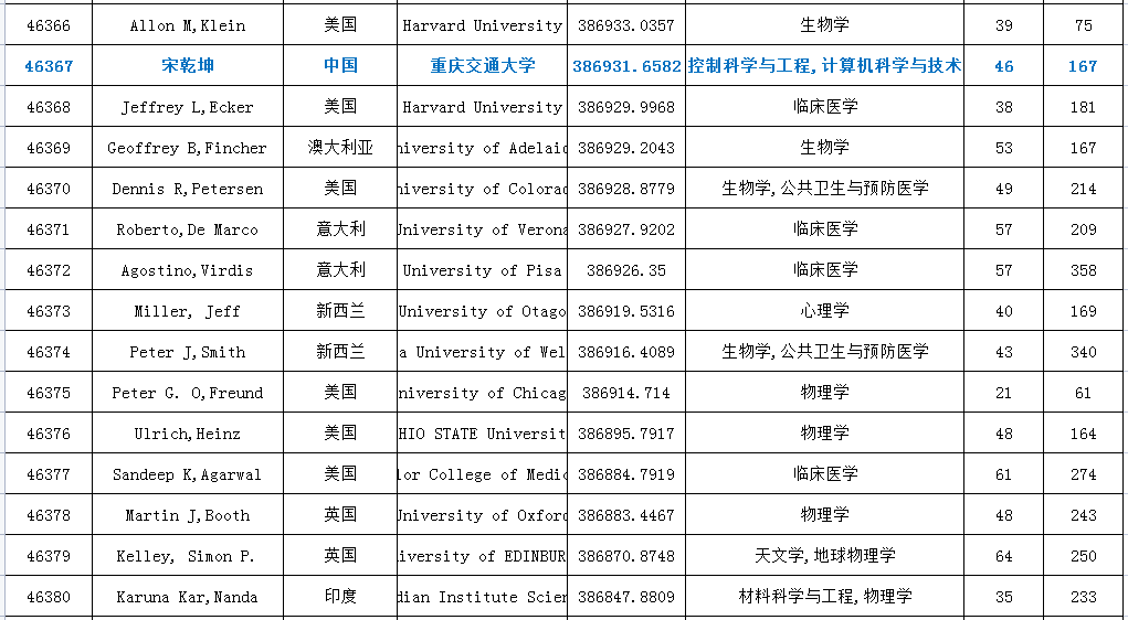 宋乾坤教授荣登“2022全球学者学术影响力排行榜”