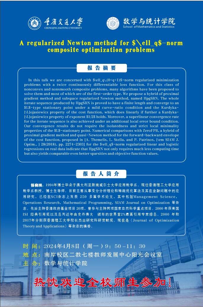 学术报告:A regularized Newton method for $\ell_q$-norm composite optimization problems