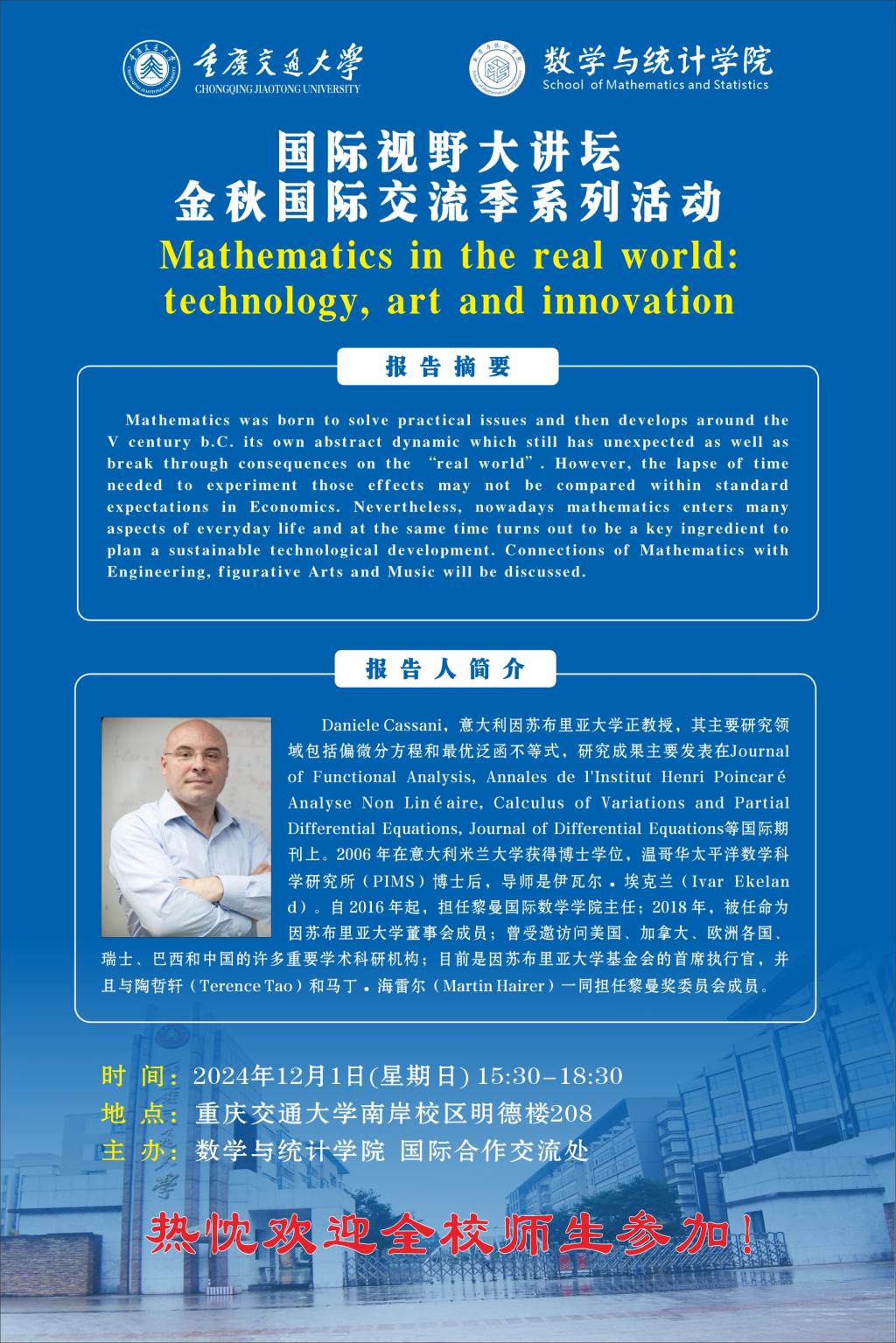 【金秋国际交流季】国际视野大讲坛:Mathematics in the real world:technology,art and innovation