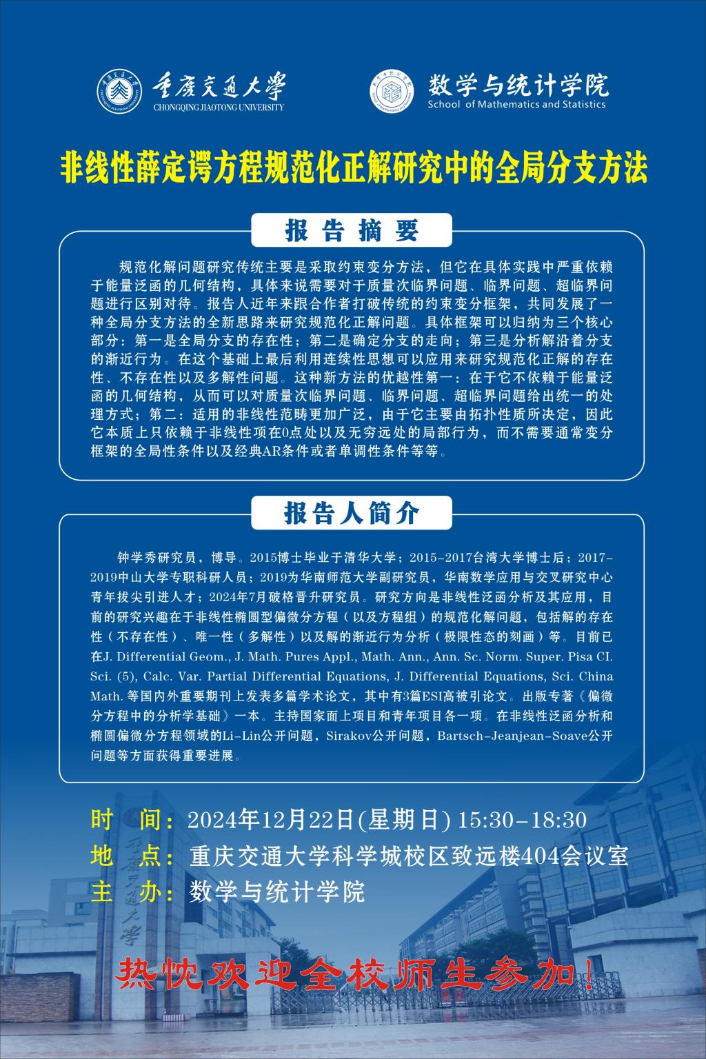 【学术报告】非线性薛定谔方程规范化正解研究中的全局分支方法