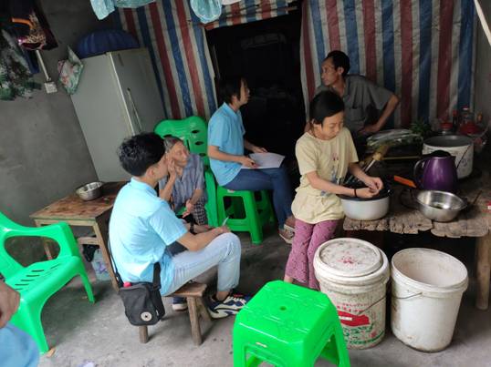有了前一天对健龙镇新石村和睦佳村的所有扶贫对象进行走访调查的经验后,队员们更加掌握了询问的技巧,第二天的进度与效率明显提高。虽然鱼洞村的许多地方都在进行基础设施建设,团队成员必须踏着泥泞的山路步行到受访人家中,但大家的热情丝毫不减。受访村民们对团队成员表示热情的欢迎,积极配合调查。房屋得到修缮,子女教育补助,医疗保险报销,各项政策落实在他们的身上;提到当地政府的扶贫工作,脸上都洋溢着幸福的笑容,认可精准扶贫的切实性,对基层干部的扶贫工作赞不绝口。