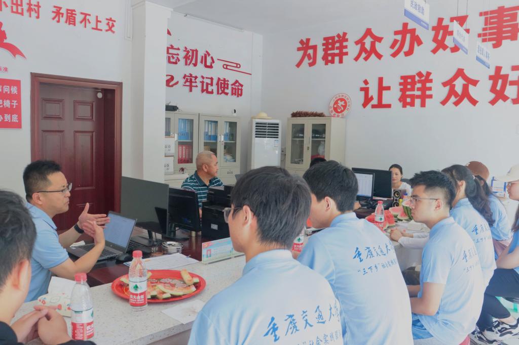 2022年7月11日下午,sunbet“喜迎党的二十大,永远跟党走,奋进新征程”暑期“三下乡”社会实践“援农侠”团队走进云阳县栖霞镇吉平村与当地村干部等开展座谈会,对话乡村振兴——了解乡村建设情况,感受干部责任担当。