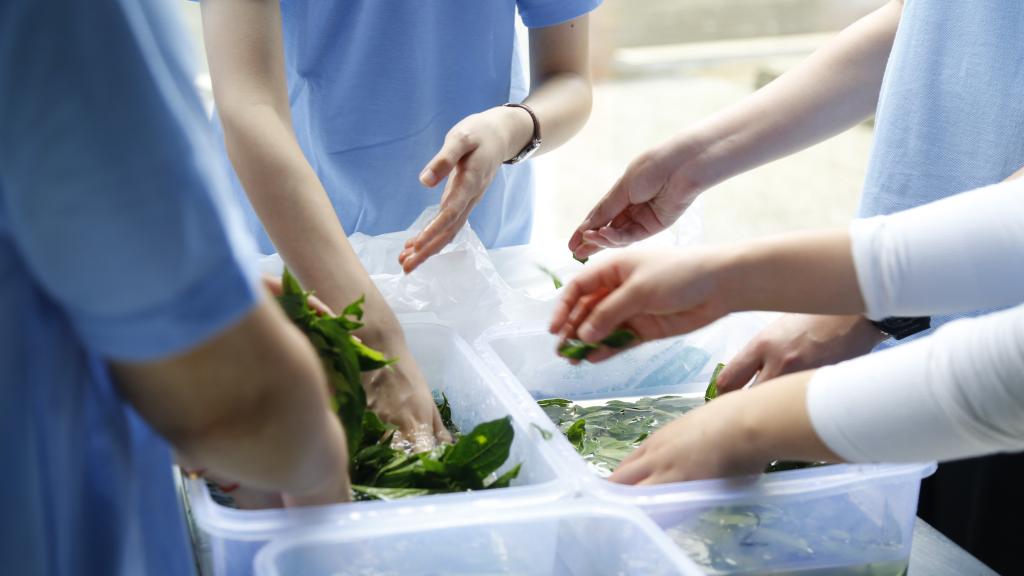7月19日下午,在雄森公司夏玉清经理的引领下,叶叶生辉团队到达豆腐柴基地,动手制作树叶凉粉。首先就是去田里采摘树叶。来到种植基地,映入眼帘的是那片绿油油的田地,在雨水的滋润下显得生机盎然。成员采摘新鲜树叶后回到室内,并在经理的指导下,开始使用传统手艺制作起树叶凉粉。树叶清洗2次,加入开水浸泡,待树叶表面出现胶质后,迅速放入冷水中冷却,随着温度的下降,再用手揉搓树叶至碎片,用纱布将汁液过滤,最后加入打卤水搅拌然后静制,待汁液凝固,树叶凉粉的制作也就完成了。尽管很多工艺需要夏经理帮助才能完成,但是看到传统工艺得以传承和发扬,更能促进当地产业振兴,队员们纷纷表示感受到传统工艺的魅力,更看到了初心和坚守。