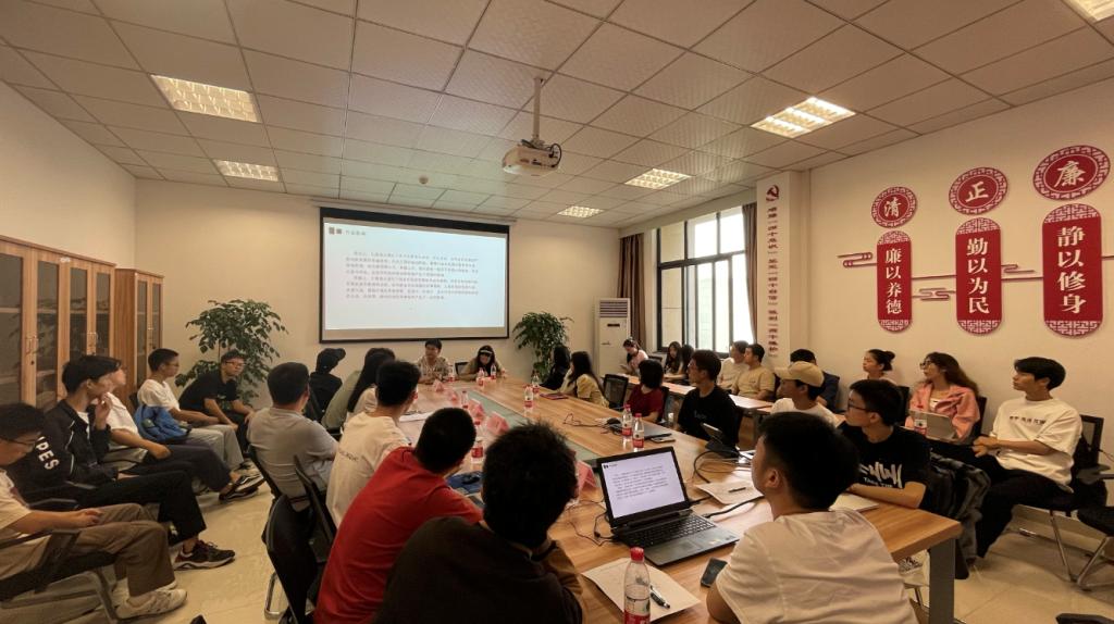 来自2022级的四名研究生分享了自己的阅读经验和感受。肖雄涛同学为大家梳理了《百年孤独》这本书的大概框架,通过讲述马孔多小镇和布恩迪亚家族一代代人的传奇故事传递了敢于面对孤独、化孤独为力量的精神力量。杜涛同学所分享的《等待戈多》一书看似荒诞又平淡无奇,实则告诫我们不能盲目行动,应正视生活,努力成为理想的自己。王智辉同学分享了《三国演义》读后感,他向同学们描述了一幕幕耳熟能详的历史故事,东汉末年战乱纷飞,从蜀汉强势到穷途末路,讲述各路豪杰豪迈、壮烈或凄美的家国事,告诫同学们应以史为镜,合理把握自己的优势,切不可荒废须臾。郭俊南同学向大家介绍了《永恒的终结》一书,分享了以时间旅行为题材的冒险故事,表达了一种不畏惧失败、积极进取、勇于冒险的创新精神。同学们结合生活和学习实际,交流读书感悟,畅谈自己的理解和看法,达到“一人读书,众人共享”的效果。