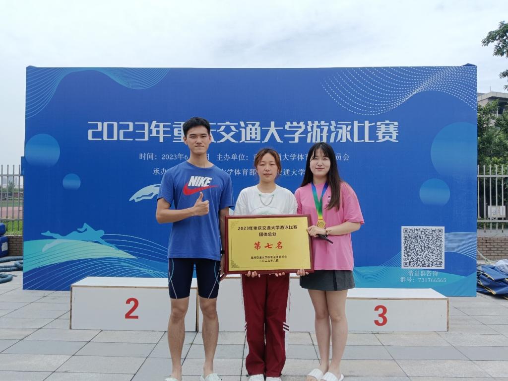 本次比赛公司共有8人参加,参赛项目包括男子50米自由泳、男子50米蛙泳和女子50米蛙泳。经过激烈的角逐,公司取得团体总分第七名的成绩。其中,公司数学类2204班陈亦嫣同学获得女子蛙泳第一名,数学类2104班曾钰超同学获得男子蛙泳第五名,数学类2203班卢仁杰同学获得男子自由泳第八名。