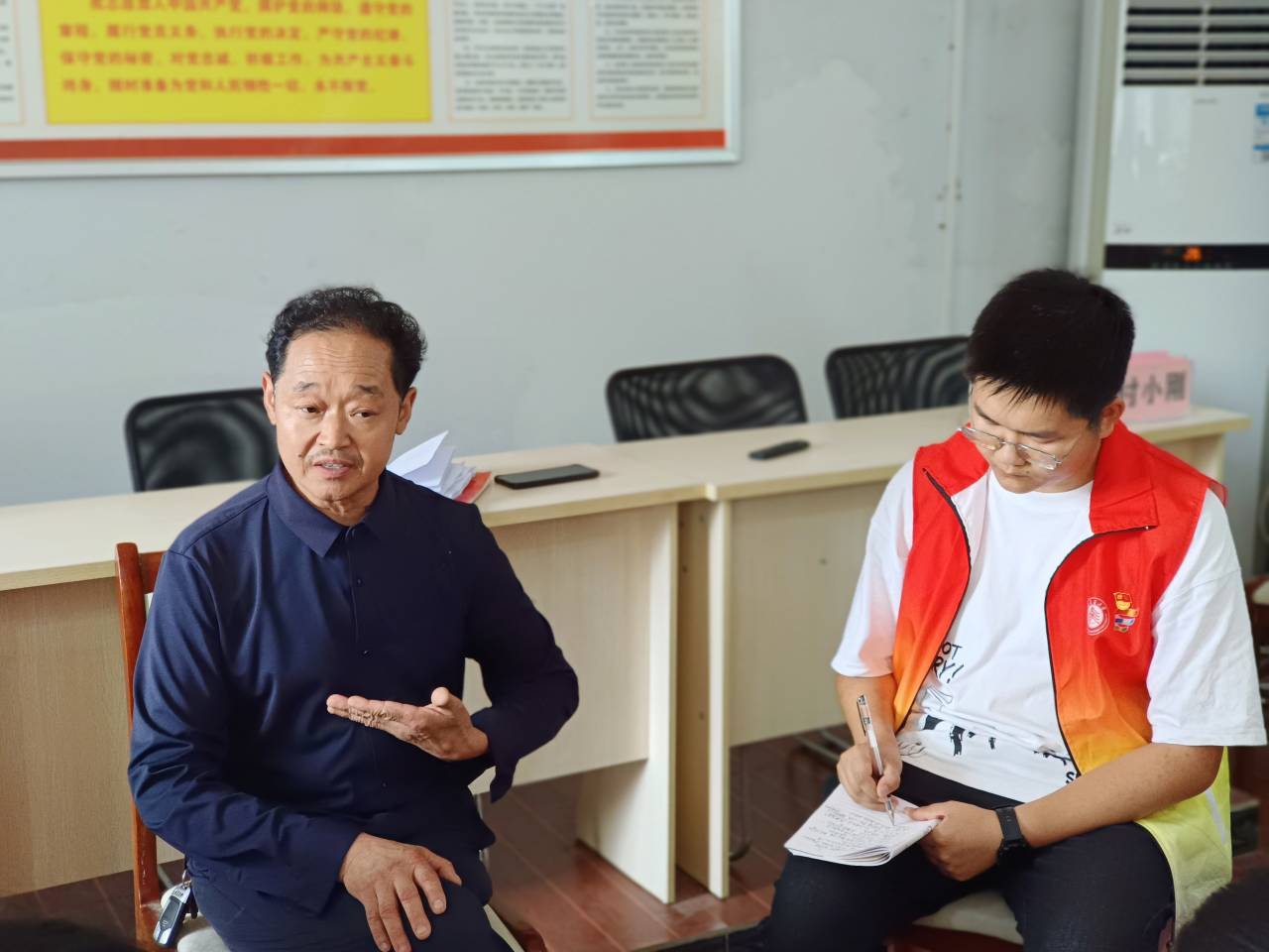 7月12日,实践团在第一书记刘亚威以及驻村工作队的带领下,走访慰问小水村老党员,聆听老党员追忆峥嵘故事,重温入党初心。