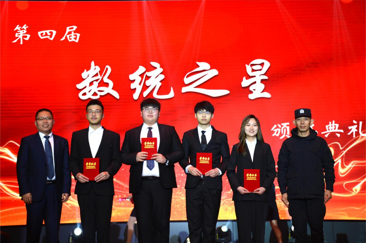 数统之星,闪耀美好未来。典礼开始前的暖场视频展现出公司学子们朝气蓬勃、积极进取的青春活力,带领大家领略了公司员工活动一年的风采与成绩。在热烈的掌声中公司经理王其林宣读了第四届“数统之星”表彰决定。公司党委员工工作部副部长金春寒,公司经理王其林,公司党委书记王祥林,江津区公安局特警支队支队长郑勇,重庆交大交通安全科技研究院有限公司副总经理张武先,科学城公司党总支书记、经理潘江为15名“数统之星”获得者颁奖并合影。