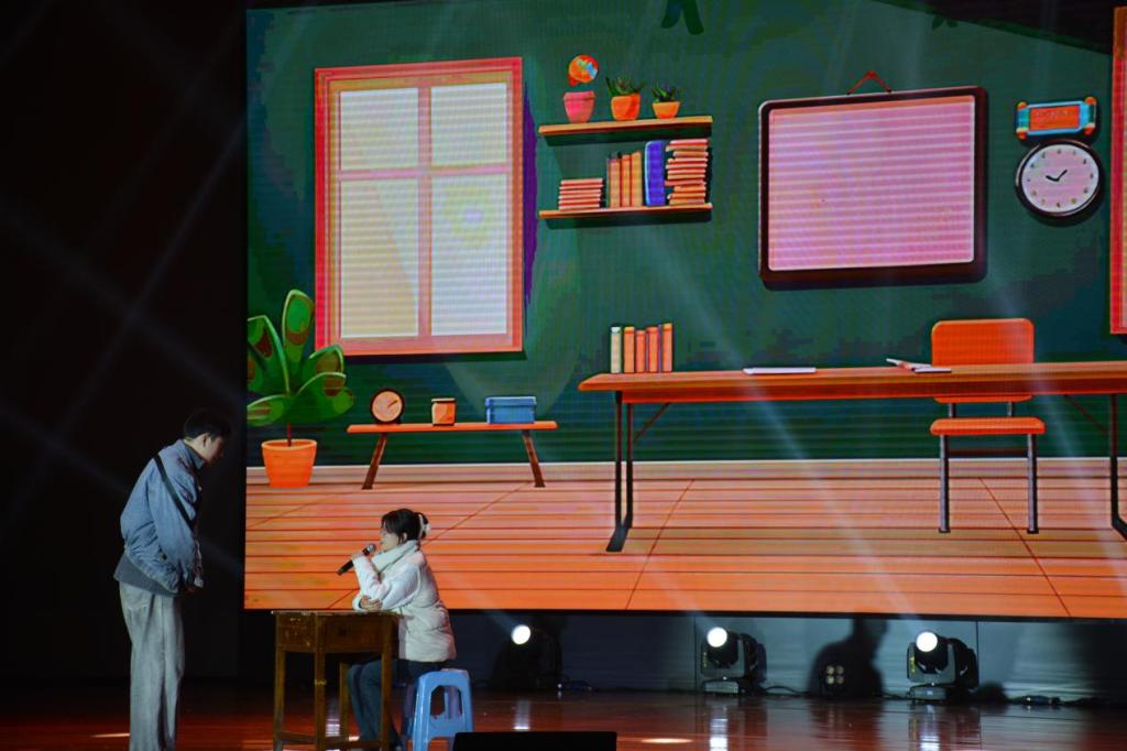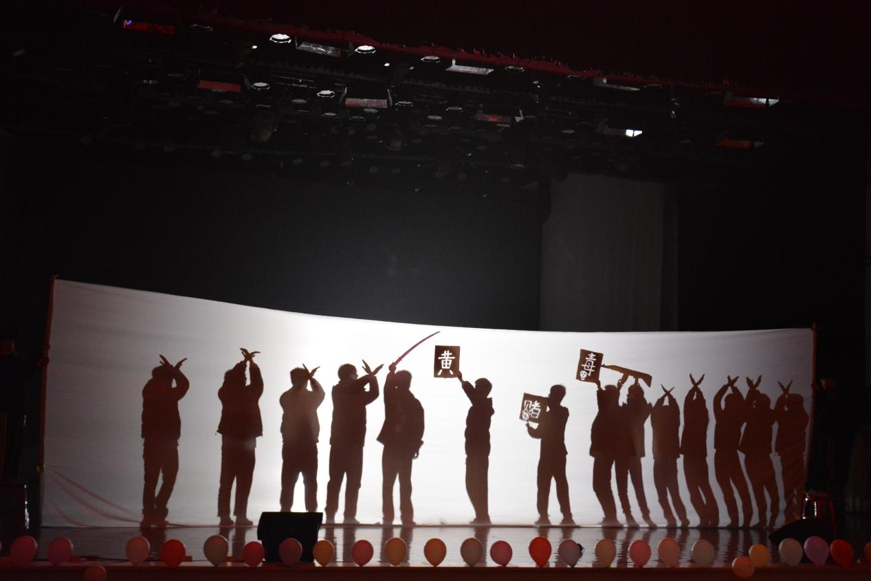融情于剧,指明芳华人生。表演无声却胜有声,幕布剧《⻩赌毒的警示》通过幽默风趣的表演让众人捧腹大笑,大笑后又不觉引人深思,三幕小情景剧告诫老员工须远离“黄”“赌”“毒”,争做向上向善好青年。情景剧《你好,彭于晏》的一幕又一幕场景,揭示员工在学习中的行为不端现象,夸张的表演中透露着警醒,警醒同学们刻苦学习,树立纪律意识,遵守纪律规定。