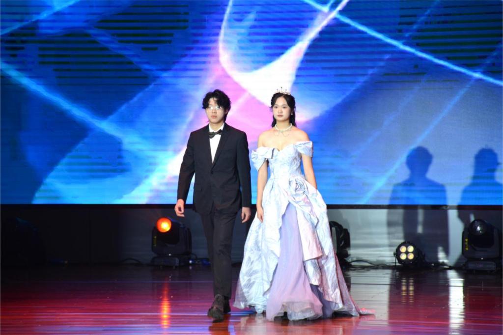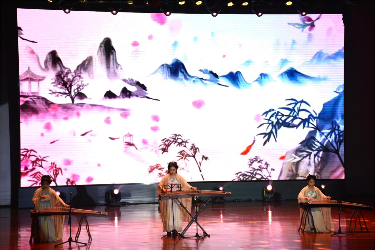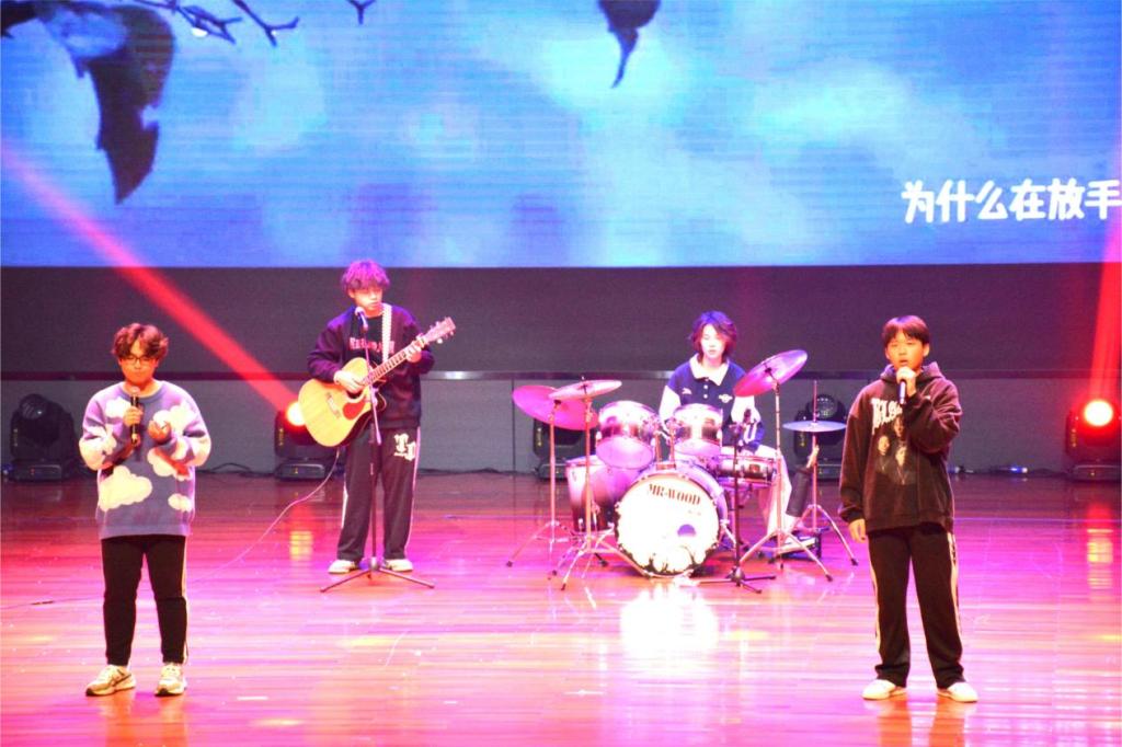 群星璀璨,歌舞绘青春。青春气息涌动,活力四射;鼓点节拍碰撞,热情挥洒。在闪光灯和荧光棒的渲染下,激情的舞蹈《危险派对》燃爆全场,行云流水的动作,诠释着青春的力量;精彩的乐队表演《民谣串烧》,动感的节奏,炫彩的灯光,奏响整个晚会,点燃了数统学子的热情;充满魅力的《民族舞》,力量与节奏结合,美感与舞姿呼应,感染了在场嘉宾;走秀《The Reveries》为观众献上一场视觉盛宴,表演者们盛装亮相,将时尚与青春完美结合,不同的个性、不同的走秀风格,不同的魅力、不同的自我展示,呈现了独特的青春旋律;声弦振动,宛转悠扬,指尖轻弹一首《渔舟唱晚》如天上行云,似山间细流,将在场观众带到深远的画面之中。