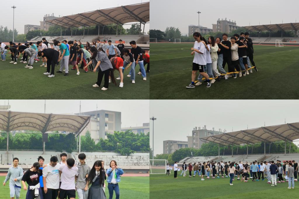 在活动中,同学们热情澎湃,笑声此起彼伏,他们密切配合,成功完成了各项挑战。在“海底穿月”游戏中,同学们奋力比拼,以最快的速度从胯下将篮球传递给队友;在“无轨电车”比赛中,赛况尤为激烈,同学们动作协调、步伐整齐划一,向终点快速前进;在“五人六足接力赛”游戏中,团队成员商量着对策,凭借超强的默契度和凝聚力,出色完成了奔跑任务;在“摸石过河”环节,成员们通过良好的沟通技巧、清晰的口头指示以及正确的手势,成功穿过了“河流”。活动结束后,同学们表达了参加活动的喜悦和收获。