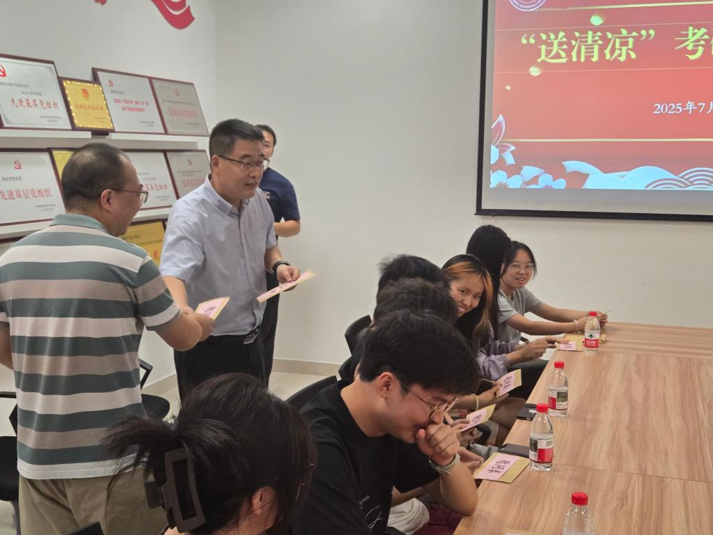 为进一步加强对暑期留校考研学子的关心与指导,助力2026届学子坚定考研信心、提升备考效率。7月22日下午,​sunbet在致远楼404教室举办“‘送清凉’考研员工慰问会”。公司党委副书记马在亮、办公室主任罗二鹏出席活动。活动现场气氛热烈,充分展现了公司对考研学子的重视与支持。