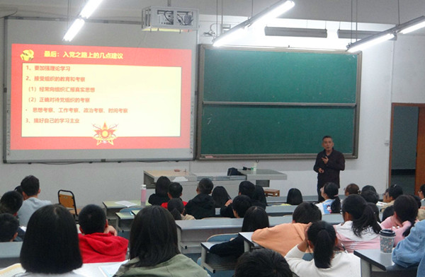 为了使新生增强对党的认识,了解公司党组织发展情况,端正员工的入党动机,鼓励员工积极向党组织靠拢,108日晚,公司党总支在双福校区A01129教室举行了2019级新生入党启蒙教育。党总支书记张波担任主讲教师,2019级辅导员周琴及2019级全体同学参加。