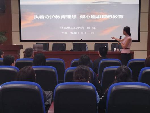10月11日下午3:30,数学与统计公司党总支和外国语公司党总支联合邀请了全国优秀教师、公司马克思主义公司傅红老师为全体党员做了“执着守护教育理想,倾心追求理想教育”的专题报告。