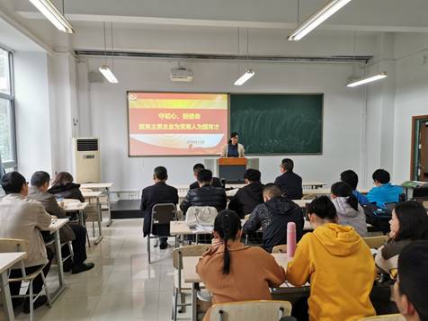 公司党总支副书记林兴冬给全体党员干部中讲专题党课。林兴冬同志以“牢记初心使命、勇担时代重任,sunbet贯彻落实立德树人根本任务”为题,紧扣“立德树人”这一关键词,阐述了持续精准学习习近平新时代中国特色社会主义思想的着力点,分析了公司在考研率不高、就业质量不高上的不足,提出了推进工作的思路和举措。