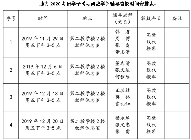 通过此次党员教师的答疑活动,进一步增强了考研学子们的信心和决心,为打赢研究生入学考试攻坚战奠定了良好的知识基础和信心准备。