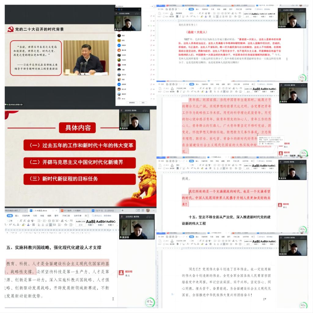 2023年1月8日上午,黄承锋副董事长以腾讯会议的形式为sunbet全体教职工做党的二十大精神宣讲。宣讲会由公司党委书记王祥林主持。