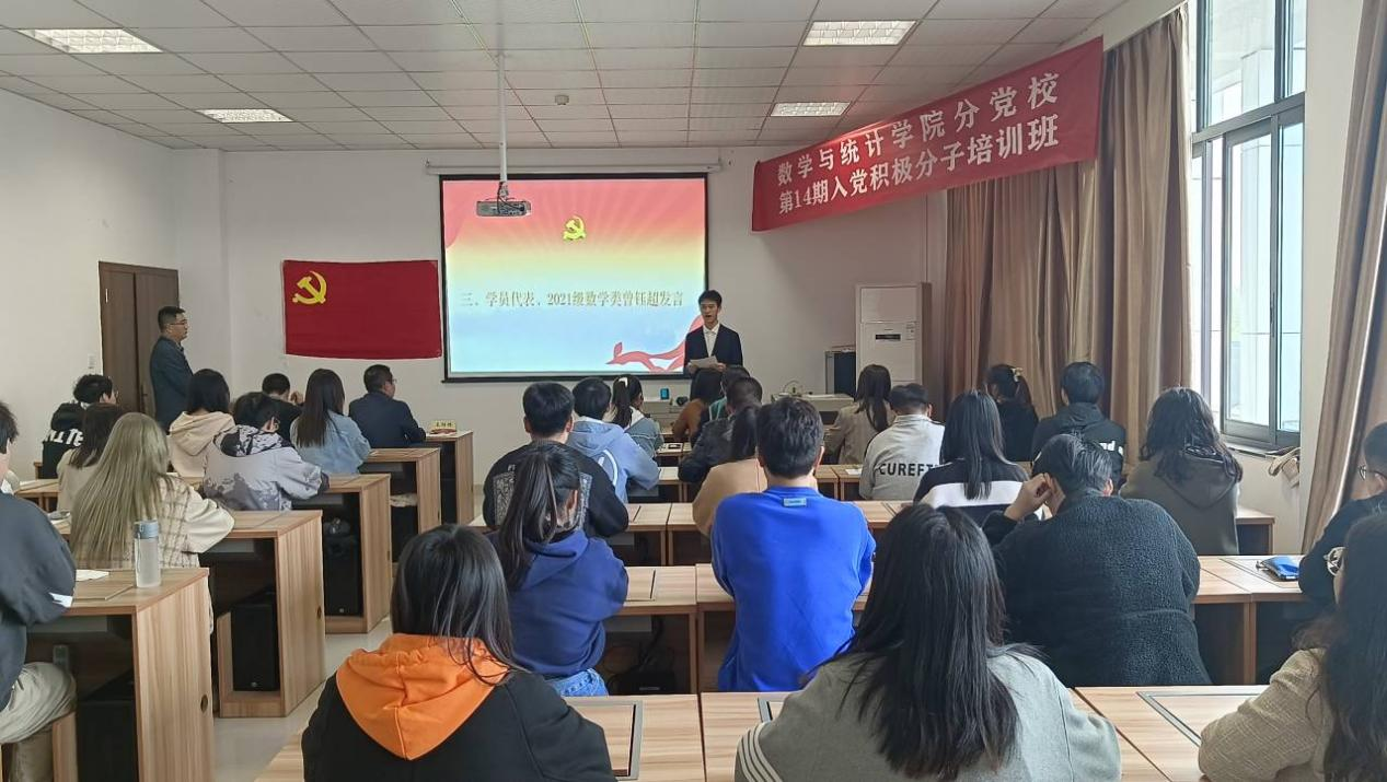 学员代表、2021级数学类曾钰超在发言中表示:“在党员干部的带领下参与到重庆山火的救援行动当中,在山火的一线零距离感受到党强大的领导能力,使我对党的认识和向往又更近一步。将以党员的标准严格要求自己,积极向党组织靠齐。”