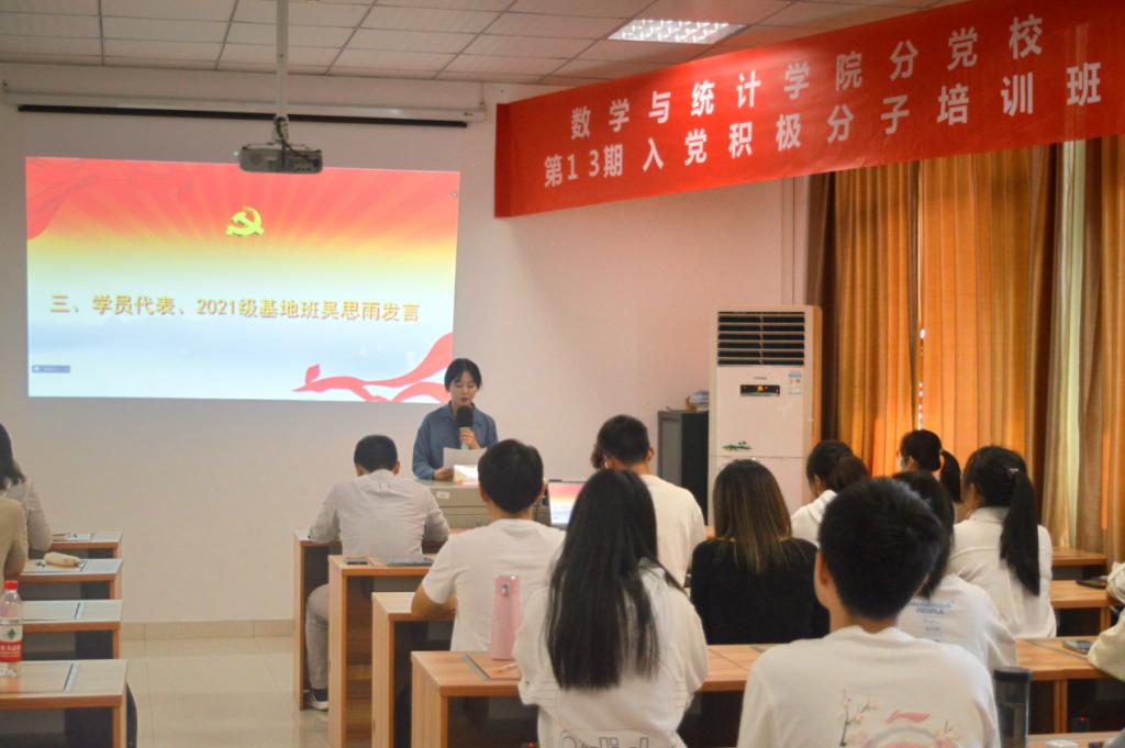 本科生党支部学员代表、2021级基地班吴思雨发言表示:“很荣幸能成为入党积极分子,我们会积极向党组织靠拢,也相信党会带领我们走向更加美好的未来。”