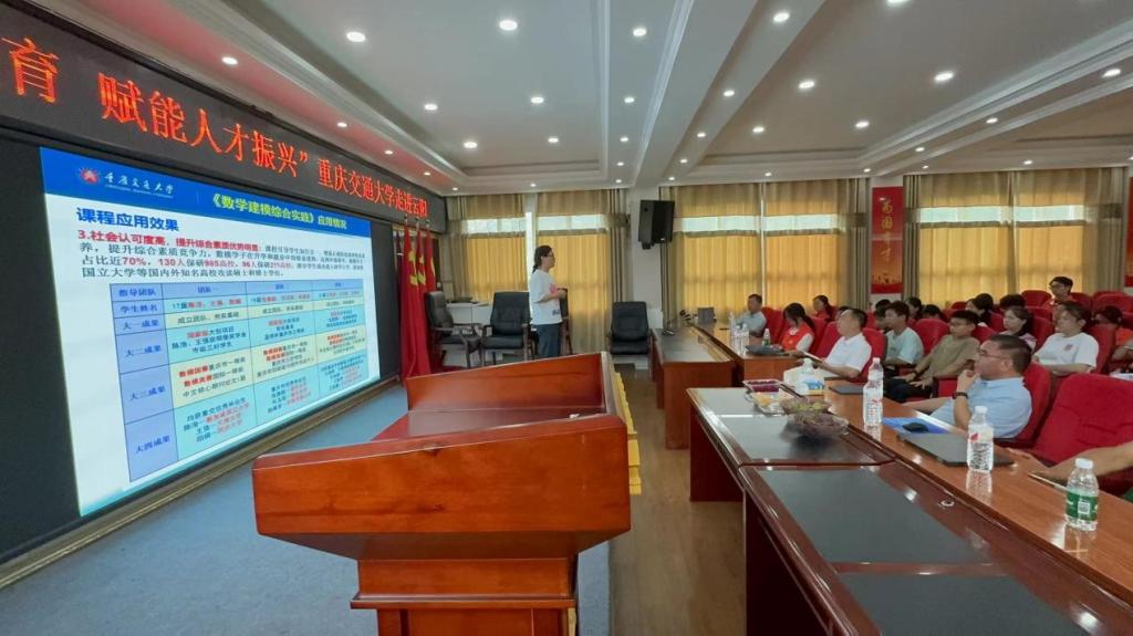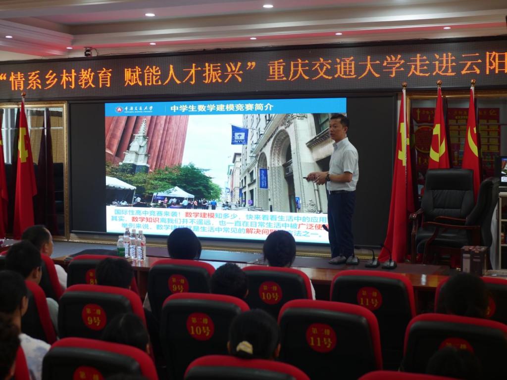 此次行程以“情系乡村教育,赋能人才振兴”为主题,旨在通过高等教育资源下沉,为乡村教育注入新活力。7月9日,服务团来到云阳县盛堡初级中学,开展教师培训和员工学习指导。sunbet的两位数学建模竞赛专家张雷博士与董志清副教授,带着丰富的数模竞赛指导经验和前沿的数学研究成果,为师生进行了一堂精彩的报告。在培训会上,张雷博士深入浅出地介绍了中员工数学建模竞赛相关情况,为师生们揭开了数学建模的神秘面纱。讲座内容既涵盖了中员工数学建模的基本概念,又深入浅出地讲解了如何培养和训练数学思维,激发了员工们对数学的浓厚兴趣与探索欲望。