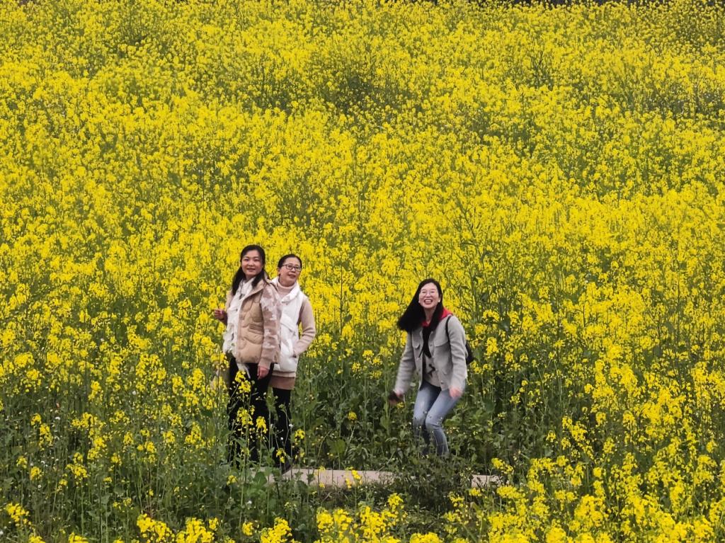 阳春三月,春光好,春色俏,广阳岛上花繁叶茂。这里绿植多,生态好,蜻蜓常飞,翠鸟时鸣,处处展现着自然和谐之美,尤以金黄灿烂的油菜花出名。大家徜徉在油菜花海中,赏花、嬉戏、拍照,或畅聊幸福生活,或交流各种体会,个个神采飞扬,一路欢声笑语。大家畅游半日,尽情享受春日旖旎风光带来的轻松和惬意,直到夜幕降临,才依依不舍地离开。