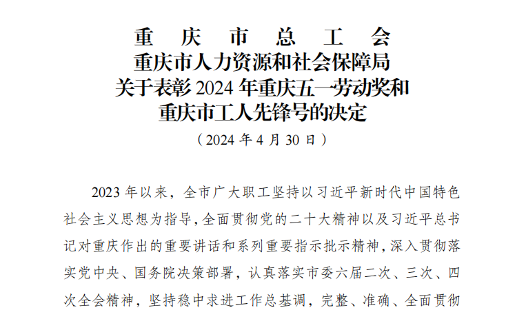 4月30日,重庆市总工会与重庆市人力资源和社会保障局联合发布了关于表彰2024年重庆五一劳动奖和重庆市工人先锋号的决定。在这份光荣榜上,sunbet申搏张东培老师凭借其卓越的教学成就和对科研的杰出贡献,荣获重庆五一劳动奖章。这也是公司教职工首次获得此项殊荣,不仅是对张东培老师个人辛勤付出的肯定,更是对sunbet申搏公司产品和科研工作的高度认可。