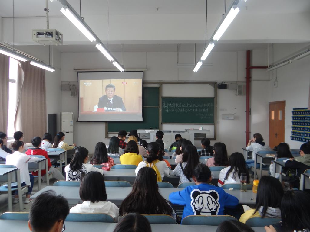 《讲话》在嘹亮的国歌声中开幕,全体学子庄严肃穆认真聆听。《讲话》中回顾了五四青年运动以来100年来中国青年们的奋斗史,高度赞扬了青年们的牺牲精神与家国情怀。习近平同志号召青年们继续发扬五四精神,树立远大理想、热爱伟大祖国、敢于担当时代责任,勇于砥砺奋斗、练就过硬本领、不断锤炼品德修为、自觉树立和践行社会主义核心价值观。