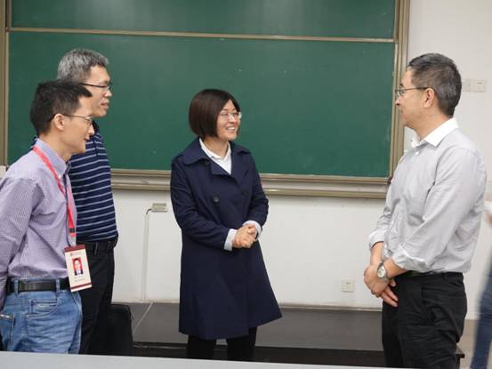 在座谈会之前,宋飞书记一行人来到教学监控室查看双福校区教学运行情况,并旁听课程。在听了任超阳老师讲授的《形势与政策》课后,宋书记称赞道:“你的课上得生动有趣,在传授知识的过程中融入大量身边人身边事,课堂学习氛围浓厚,让我也入迷了!”