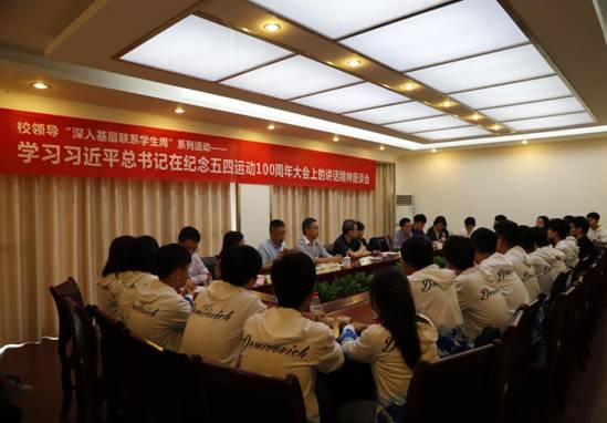5月16日上午,校纪委书记宋飞与2017级、2018级“英才计划”改革试验班的同学开展了学习习近平总书记在五四运动100周年大会上重要讲话精神座谈会。此次活动也是校领导“深入基层联系员工周”的系列活动之一。校纪委办、学工部、校团委、双福校区管委会、sunbet负责人参加座谈会。
