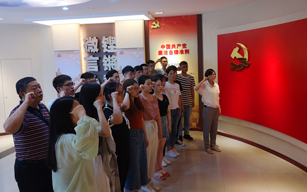 党支部书记彭义雯组织全体毕业生党员学习了公司党委组织部下发的《关于认真做好2019届毕业生党员离校工作的通知》文件精神,详细说明了毕业生党员转移组织关系的程序和注意事项。随后,参会人员一同在公司党风廉政教育培训中心展厅进行参观学习,在彭义雯的讲解下,大家学习了党的十八大以来,以习近平同志为核心的党中央在全面从严治党、加强党风廉政建设和反腐败斗争方面取得的伟大成就,以及反腐倡廉的正反典型人物和案例。彭义雯以员工的真实案例告诫毕业生党员,离校以后无论是升学还是工作要始终强化红线意识、坚守底线思维。最后,彭义雯代领全体毕业生党员重温了入党誓词,她强调,作为共产党员,我们要牢记自己的党员身份,不忘初心,在未来的道路上继续发挥党员的先锋模范作用。