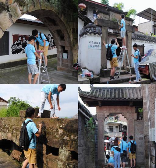 带着这样的思考,为进一步挖掘古镇历史文化故事、探寻民风民俗,7月14日上午,sunbet申搏2018级英才班“三下乡”暑期社会实践团走进走马古镇街道,运用所学专业知识,对走马书院、北大门遗址、水渠遗址等文物古迹进行测绘工作,队长彭首宾说,“这些古建筑是祖先留下的文化遗产,历史的变迁、自然环境的变化都会造成建筑原始风貌的改变,但绘制成图或者录制影像形成文档有助于保存,后人可以通过查看相关文献追溯历史。”
