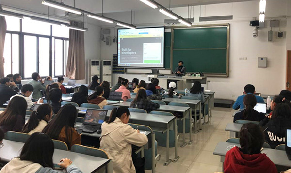 刘君博士结合数据分析市场发展态势,用各类经典的实例给同学们做演示指导,从实例中剖析Python的精华,展现大数据、数据分析在社会生产、生活中的巨大作用和价值;员工们紧跟着老师步伐,细心观察着老师每一步骤的做法,在电脑上做着相同的步骤并做笔记。