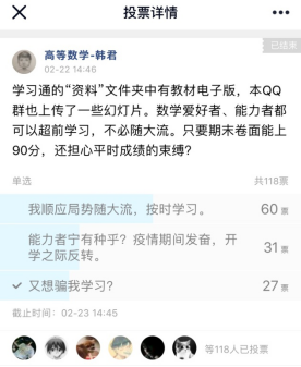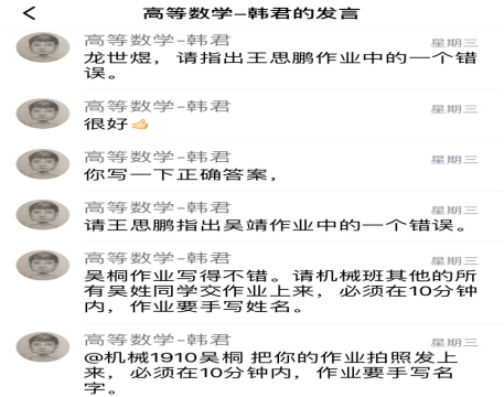 韩君老师:疫情期间,有两门课:专业课《可靠性统计》与公共课《高等数学》,所用平台为学习通(自动批改作业)、慕课(引用资源)、微博(自制视频)、QQ群(互动交流)。现分享主要教学经验如下: