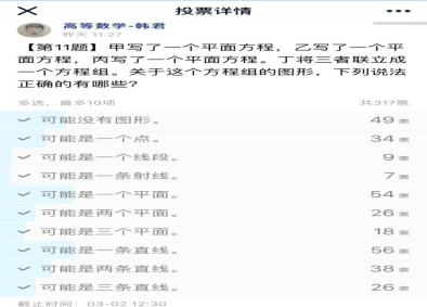 为了增加一些趣味性,讲授《高等数学》时,我自制了一些动态图,以增强直观感受;讲授《可靠性统计》时,我通常先让大家做一些轻松的选择题,以引出复杂的概念。(如下图)