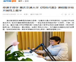 2月7日晚7点,作为《线性代数》课程负责人,赵磊娜副教授利用“学习通”开启了本学期第一次非正式教学直播。本次活动共1100余名员工4位主讲教师参与了本次现场直播学习。得到国内主流媒体新华网、华龙网纷纷予以宣传报道。