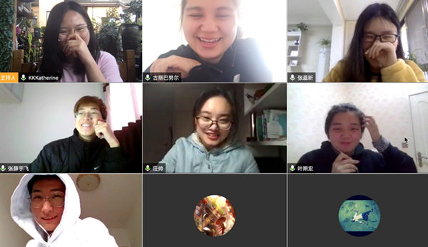 有积极的讨论与分享。他们踊跃发言,讨论如何缓解压力。为放松身心,19级应用统计学2班设计了“真心话大冒险”环节,员工在线分享学习和生活中的感悟、趣事等等,同学们交谈甚欢,笑容可掬。此外,同学们还展示自制的“战疫明信片”、“心理小报”。