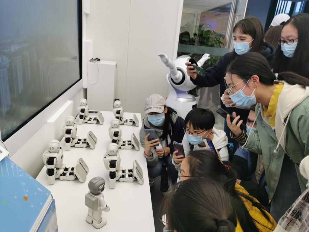 活动第二阶段,阿里云创新中心工作人员组织员工分批次到“重庆数字经济发展展示中心、中国信息通信研究院西部分院、中移物联网、阿里云AIoT展示中心、重庆卫士盾感知数字技术有限公司”等实践基地进行参观学习。展厅通过环幕互动投影、壁纸屏、幻影成像等交互产品和数据展示,让同学们快速且深刻地了解重庆市智能产业发展、大数据智能化推进、传统产业优化升级、智能化应用、创新体系构建、高速安全信息基础设施建设、智慧消防应用、龙头企业创新创业历程等情况。在参观过程中,同学们还与机器人开心互动,切身体验人脸识别系统、VR设备,直观地感知了云计算大数据、无人科技、人工智能、智慧医疗等科技元素。