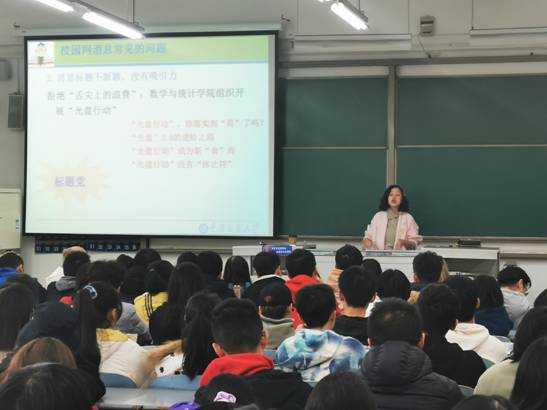 徐洁老师从新闻是什么入手,深入浅出的给同学们讲解了新闻的定义及特点。“你写的新闻真实吗?准确吗?简明吗?”徐洁老师以扎实的专业知识为同学带来答案。之后徐洁老师更是十分明确地为同学们指出校园网消息常见的问题,例如:标题模糊词滥用,导语过于冗长,八股文盛行等。徐洁老师以正反例子结合讲解的方式让同学们迅速领会新闻写作奥秘所在,“邀你改稿”的互动模式更是让同学们对新闻写作有了更深入的认识和学习。随后,徐洁老师就同学们的日常写作训练推荐了许多方式以及相关的阅读材料,对于新闻稿中使用的相关照片也做出拍摄技巧指导。