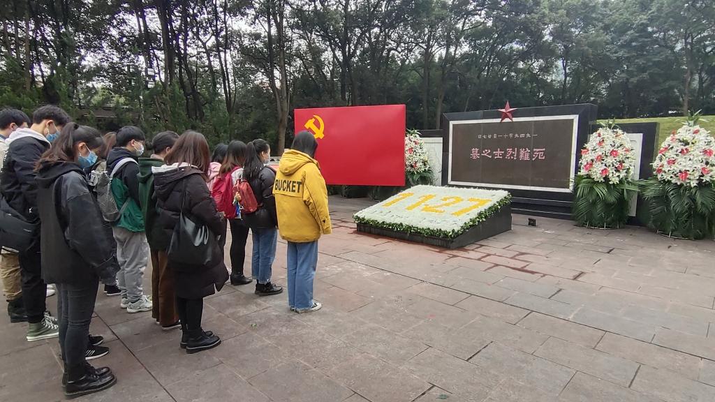 2020年11月28号中午13:30,入党积极分子们乘坐校车前往歌乐山烈士陵园,缅怀为了祖国的解放和人民的安宁而英勇牺牲的烈士们。到达陵园后,同学们分组轮流进行祭扫烈士墓活动。