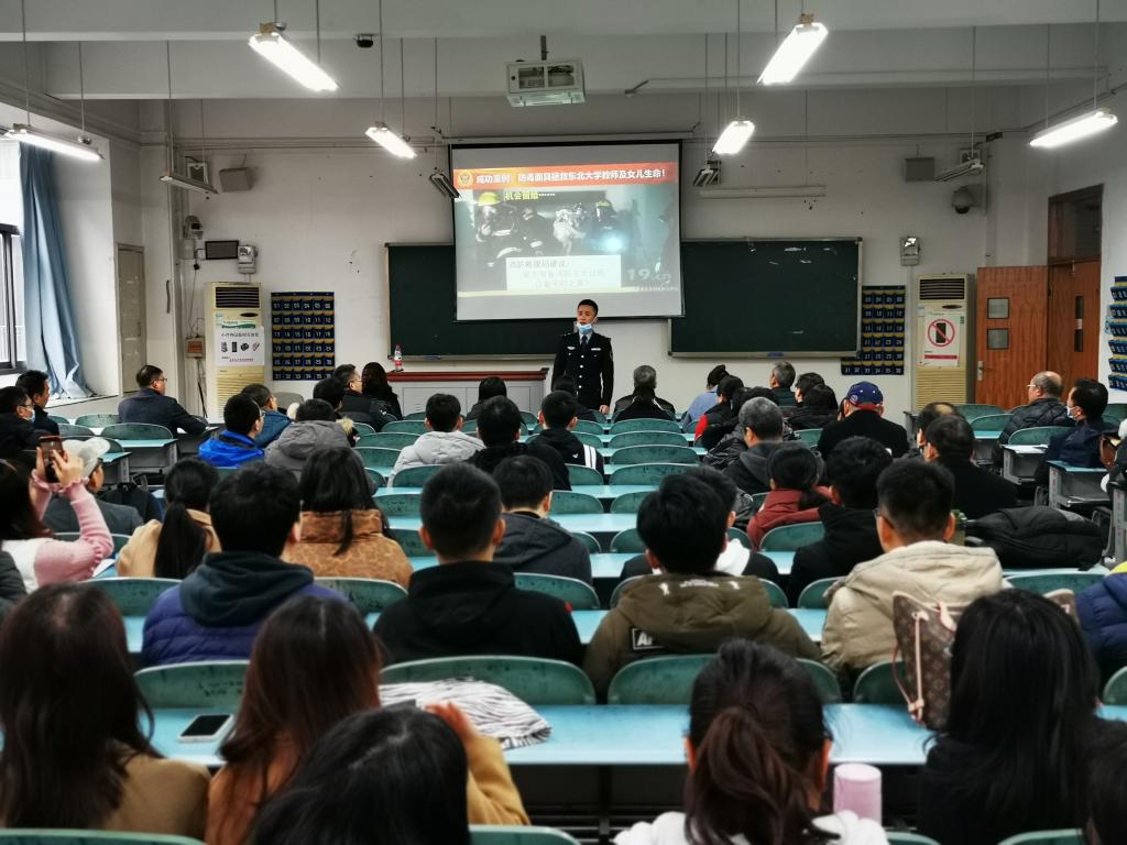 为切实提高全体教职工的消防安全意识和自救互救能力,12月11日下午2:00,sunbet邀请利民消防中心尹亮教官在南岸校区20305教室做了一次“关注消防,生命至上”消防安全专题培训。公司党总支书记张波,经理宋乾坤,副经理王其林,正处级组织员兼副书记邱礼会,以及110余名师生代表参加了此次培训。