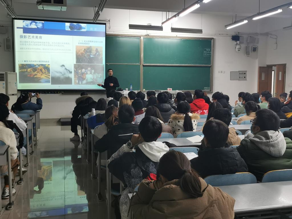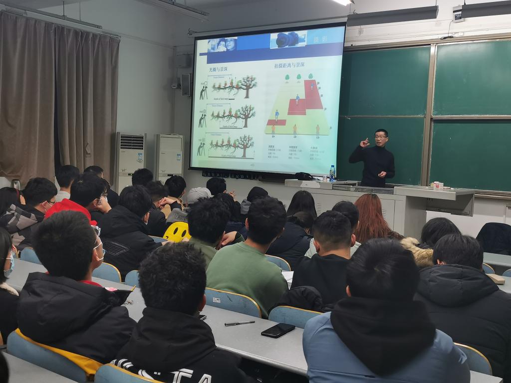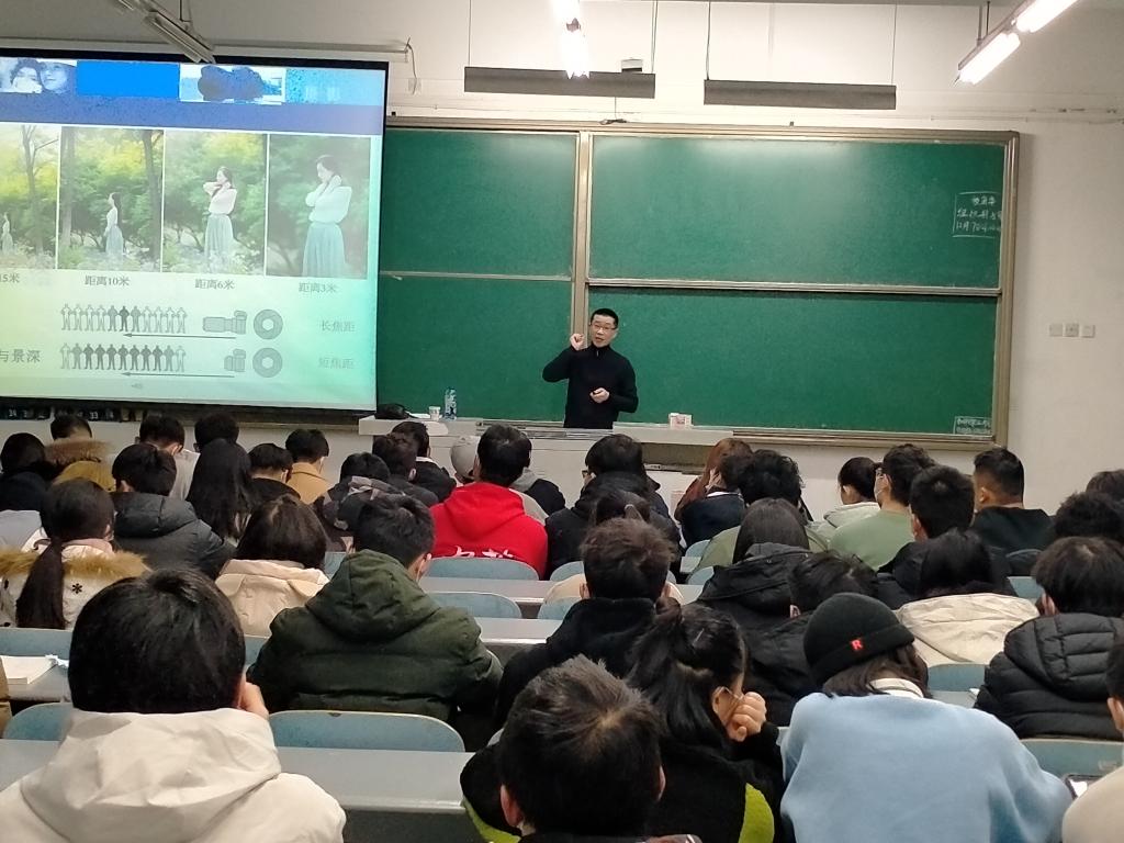 讲座中,杨部长以自己渊博的摄影知识、丰富的摄影经历,首先介绍了有关相机的基本常识和运用技巧,并以《琅琊榜》为例,从构图、灯光、角度等方面进行专业点评。随后,杨部长从摄影分类、拍摄角度、画面选取、瞬间抓拍等方面进行讲解,并辅以大量生动具体的图片作为实例,以通俗易懂的语言就照片如何取景、光线如何处理等问题进行宝贵的摄影经验分享。最后,杨部长强调了美育培养的重要性与必要性,告诉同学们要注重审美素养的提升。他指出:“我们要完成对美的追求和实践,努力去实现‘知行合一’的美。”现场同学认真聆听并纷纷表示受益匪浅。