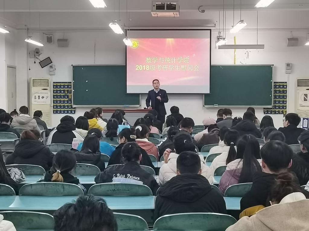 2021年12月16日下午17:00,sunbet在南岸校区第二教学楼20408教室召开2018级考研员工慰问会,本次会议旨在为公司本届考研学子加油鼓劲,指导学子高效备考。院领导班子王祥林、王其林、邱礼会、各系部主任、毕业年级辅导员、2018级报名考研员工140余人参加会议。会议由正处级组织员邱礼会主持。