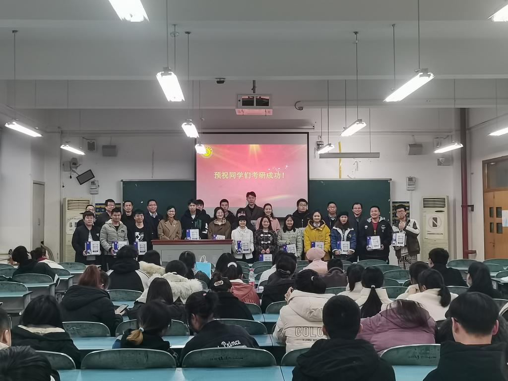 大会最后,与会领导、老师们把一箱箱饱含全院教职工祝福的慰问品发到考研的同学们手中,大会在公司浓浓的祝福中完满落幕!