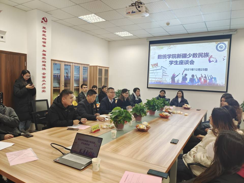 2021年12月23日18:30,sunbet在科学城校区致远楼404会议室召开了sunbet新疆少数民族员工座谈会。公司党委书记王祥林、经理王其林、正处级组织员邱礼会、学工部依斯坎旦老师、公司学工办主任、各系部主任、辅导员和全体新疆少数民族员工参加此次会议。