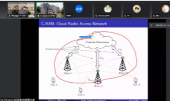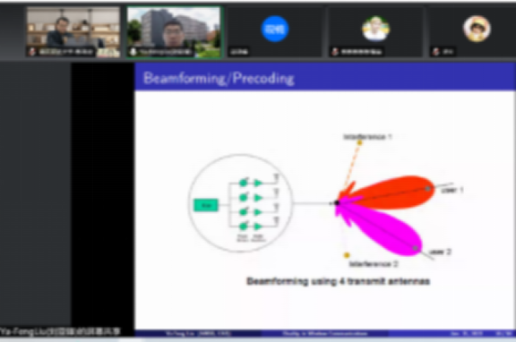 王经理向大家介绍了刘亚峰副研究员并致欢迎词。随后,刘亚锋副研究员做了精彩的报告,报告从优化的视角看无线通信中的上下行对偶:一场拉格朗日和香农的对话,既涉及优化理论又涉及优化算法。报告内容新颖、思路独特,给参加此次会议的师生们带来了许多启发。报告结束后,大家积极提出问题,刘亚锋副研究员一一解答并给出建议,激励在场师生刻苦钻研学术,努力做好科学研究。